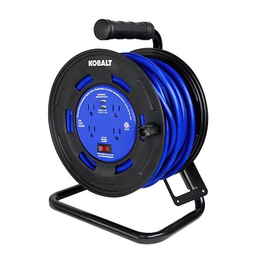 This 80′ extension cord system offers four outlets and two USB ports, and neatly winds up for easy storage. Keeping the garage or worksite organized is always a challenge, and this makes a huge difference.