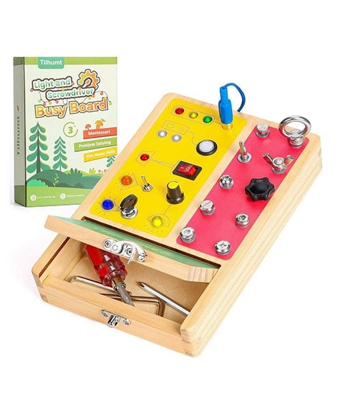 There are a wide range of busy boards out there, but this one stands out because it uses a variety of real screwdriver heads and bits. The various light-up knobs are always a hit, too! This one’s going on Luca’s wishlist this year.