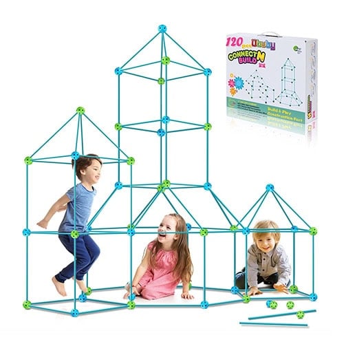Tired of your furniture and pillows scattered around the house? (Me too). This kit lets kids get creative and build much sturdier and more elaborate forts, tunnels and more. Just snap the pieces together and add blankets. Great for indoors or out.