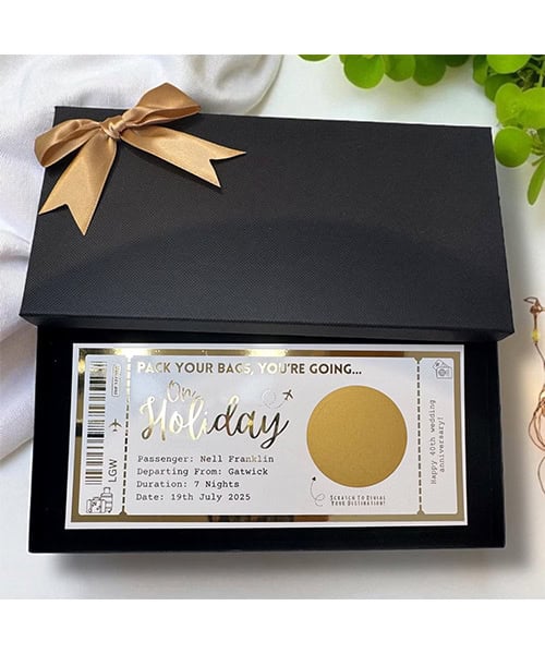 If you plan to surprise them with a trip, concert, event, or anything else that canโt be unwrapped, these scratch-off tickets are such a fun and memorable way to reveal their gift. Theyโre fully customizable with dozens of design options. Iโm definitely stealing this idea for future surprise gifts!