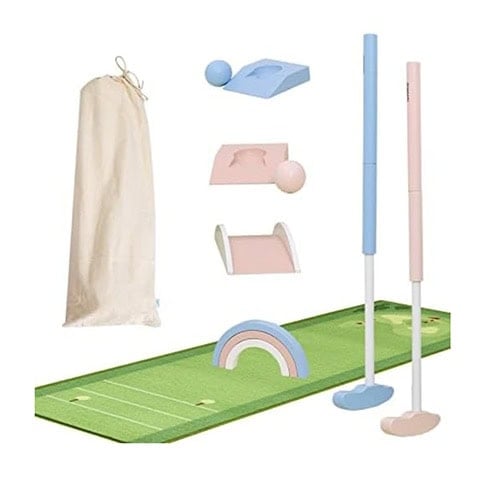 This wooden golf set turns any room or backyard into a mini course, complete with clubs, balls, and obstacles. The design is on point, and it’s an activity the whole family can join in on.