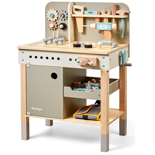 This wooden tool bench comes with everything they need to practice their โfix-itโ skills, just like mom and dad. Practical, well designed, and guaranteed to be a hit with little builders.
