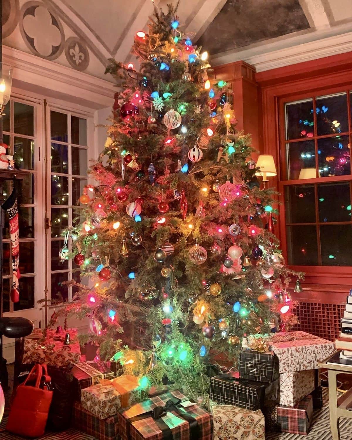 Think jumbo multicolor lights, tinsel, handmade and mismatched ornaments passed down from your grandparents. Letting the kids help pick out a tree to cut down and decorating it together, imperfectly and joyfully.