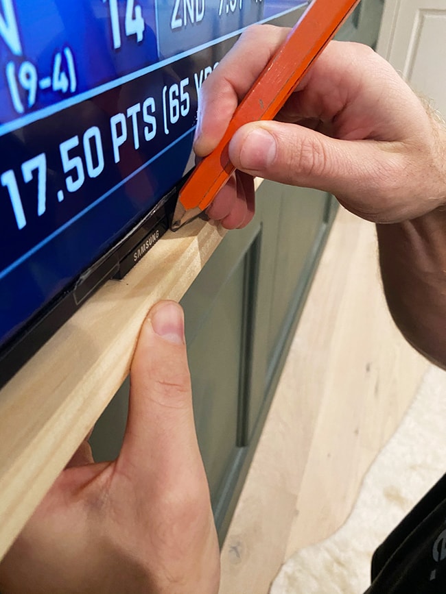 First, measure the length and width of your TV to find your cut lengths. The edge of our TV had a slight bevel, so we needed to measure from the widest part. We then added an extra 1/16″ to allow for some wiggle room.