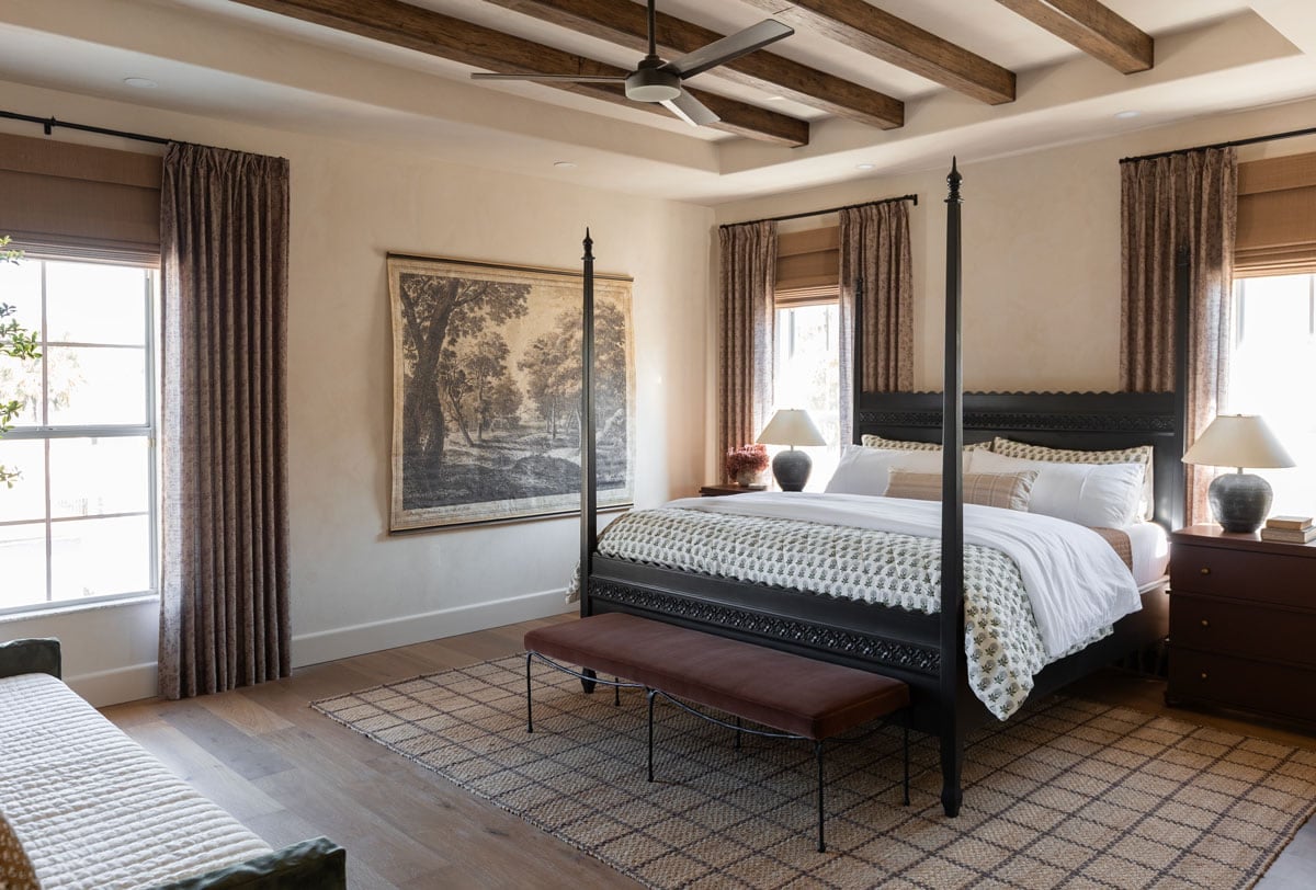 I also chose to fill the entire wall with curtains to eliminate any awkward space from the off-center wall. You certainly don’t have to do this (and I wouldn’t in most situations), but a wall of drapery can feel luxurious and give off hotel vibes in a bedroom.