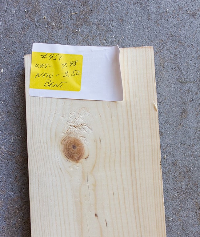 On that note, if you aren’t picky about your wood, I also learned there’s an area outside in the front of the store where they sell discounted defective lumber. It’s worth looking through!