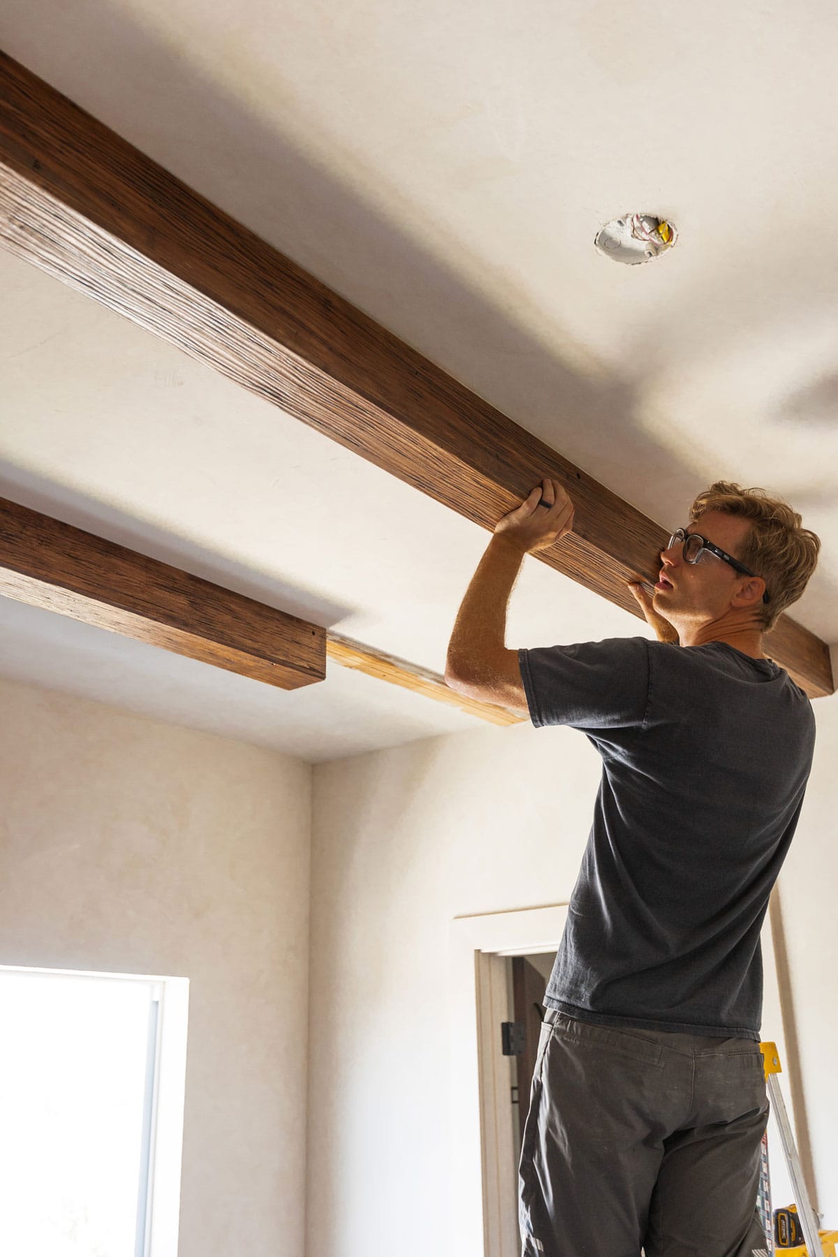 The biggest holdup right now is one addition I’m very excited about. For added architectural interest and a more authentic Spanish feel, I decided to add corbels underneath the beams. I found these that were the perfect fit, and I’m just working on getting the right stain combination to match the beams.