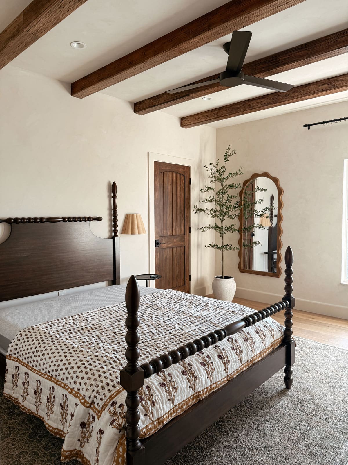 I came across this gorgeous solid wood four poster spindle bed, and immediately added it to my cart after seeing the price. It was the first piece I chose for the space, and helped guide the design direction.