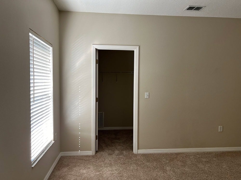 It has a smaller footprint, measuring just shy of 11’x14′, with a tricky layout given the location of the entrance, closet and bathroom doors.