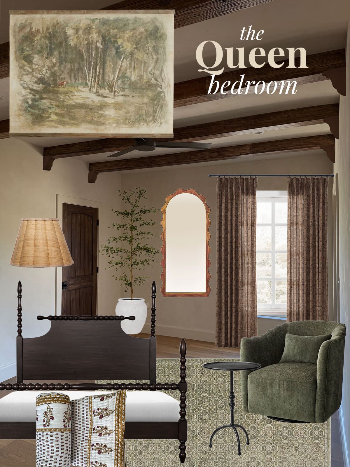 In the midst of all the holiday hustle and bustle, we’ve been chipping away at a new bedroom in the Spanish Sanctuary—one I’ve aptly named The Queen Bedroom.