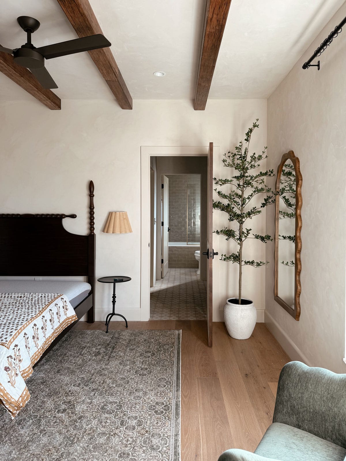 The layout naturally called for a queen bed, so the Queen Bedroom was born, and I leaned into a timeless Spanish style with a regal, elegant feel.