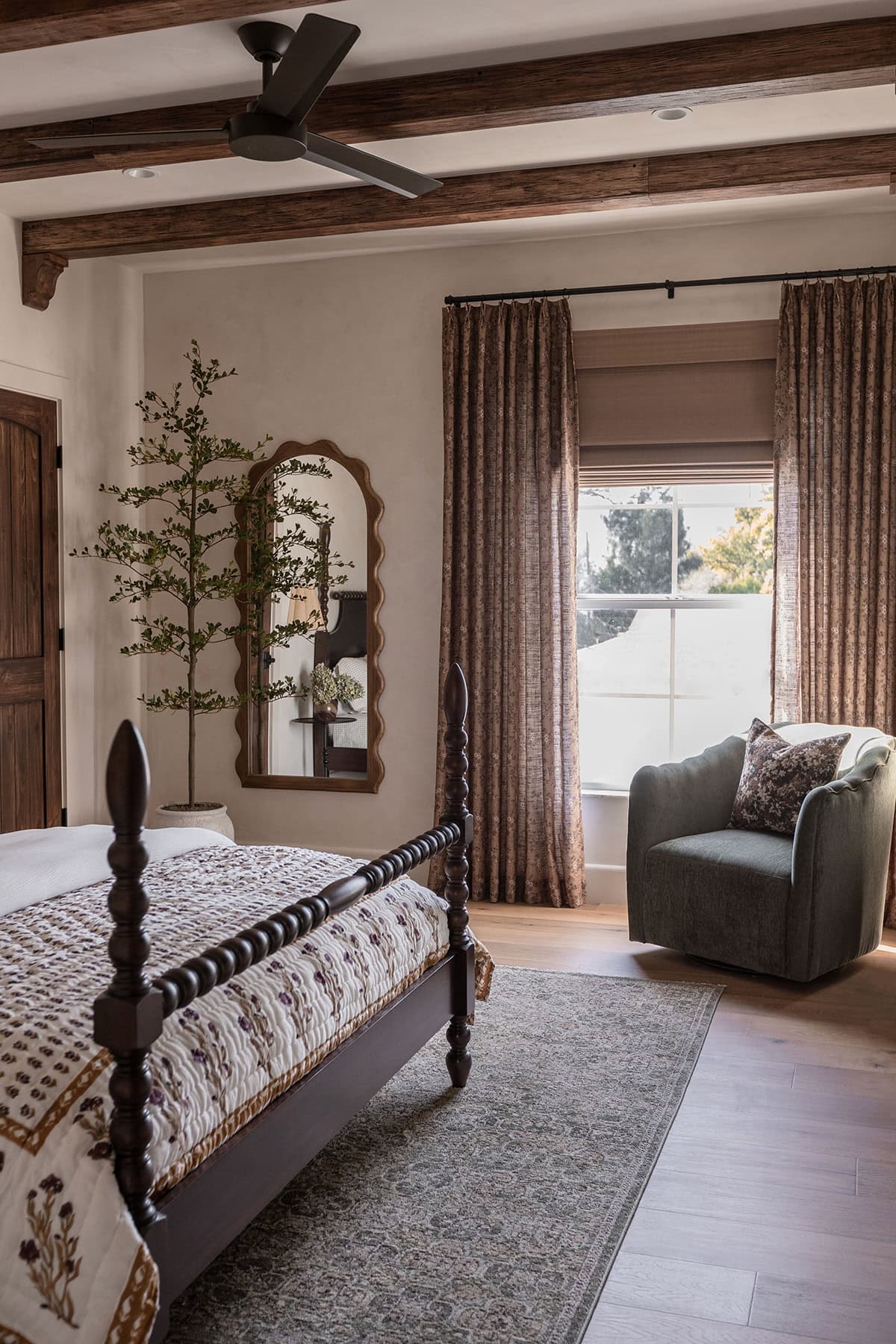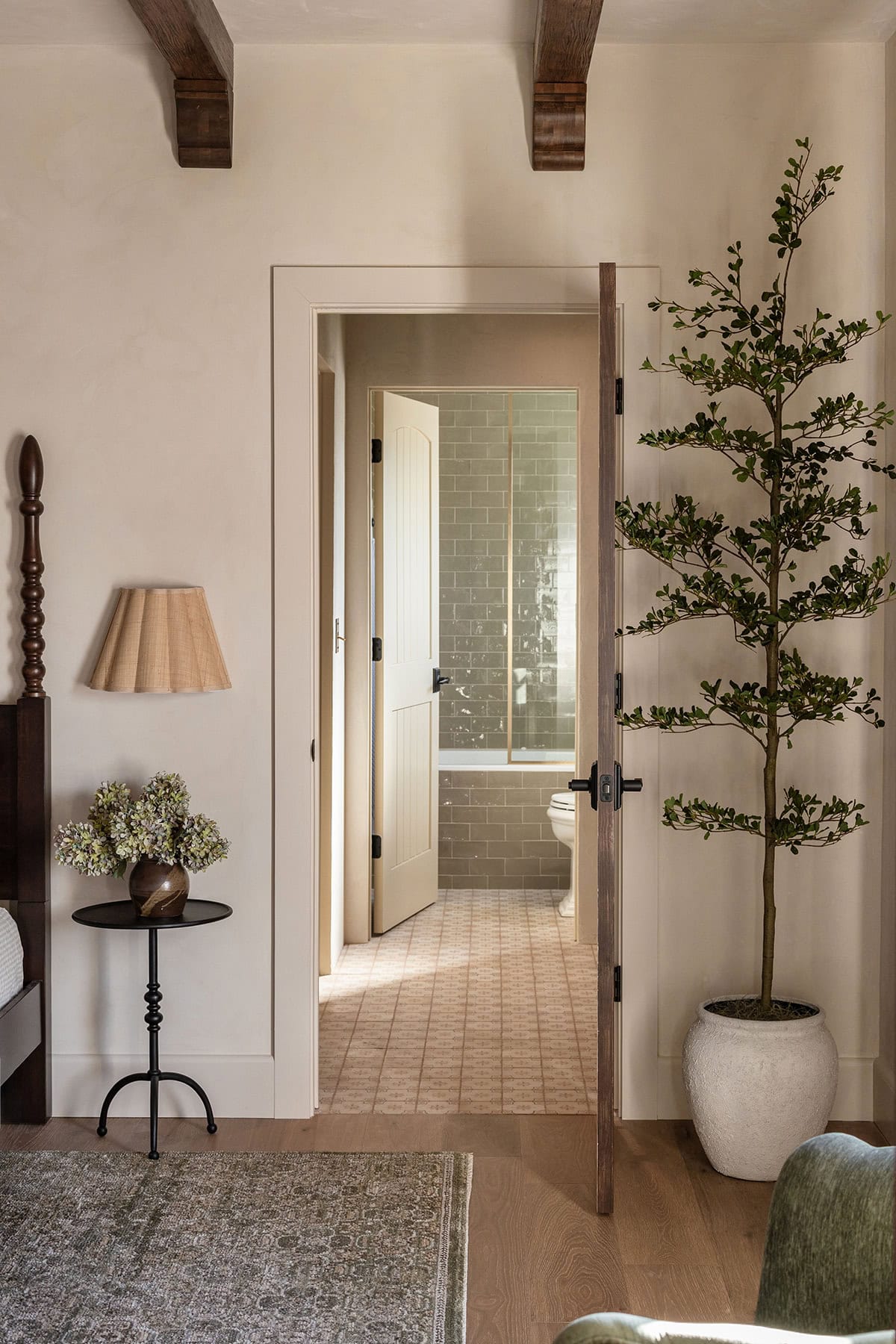 The layout naturally called for a queen bed, so the Queen Bedroom was born, and I leaned into a timeless Spanish style with a more traditional feel.