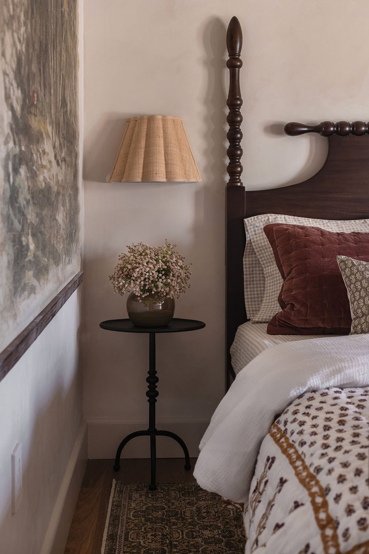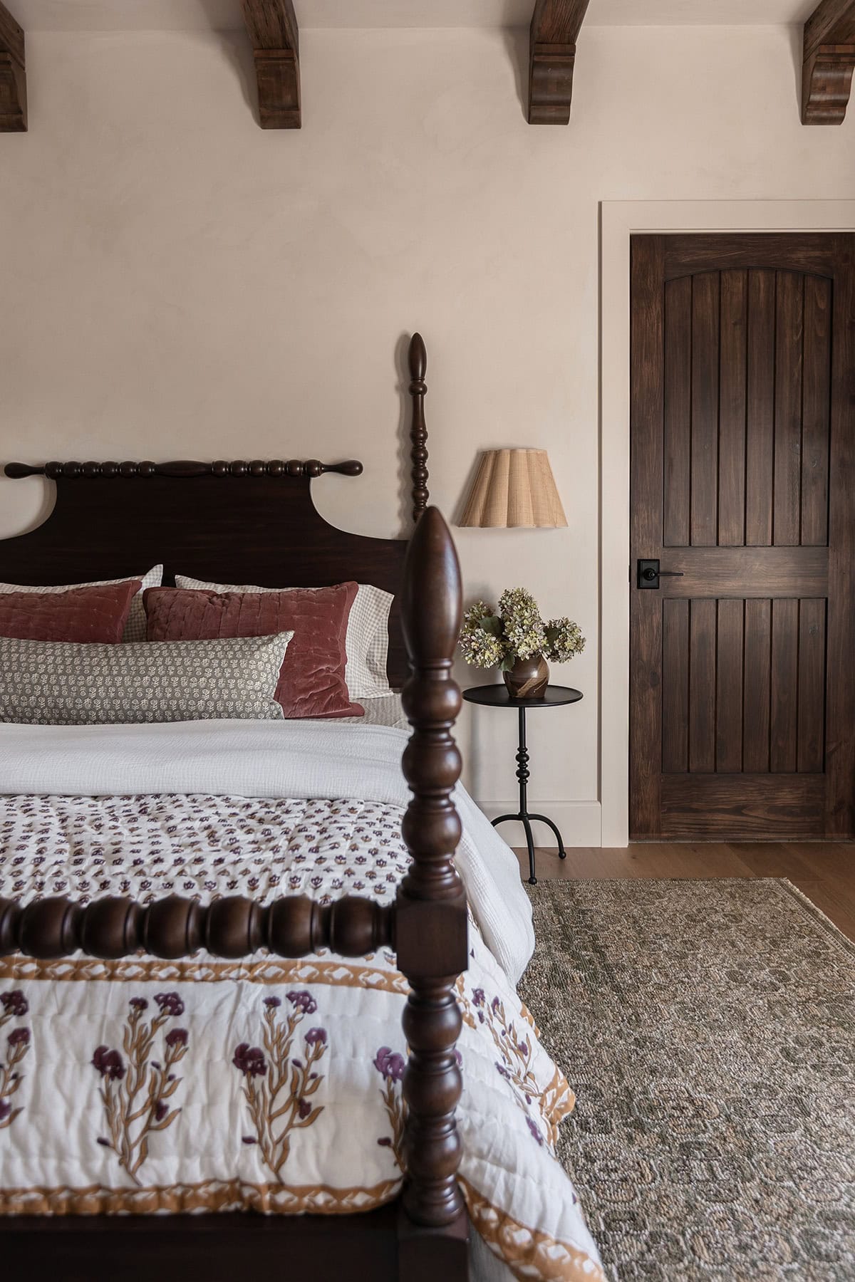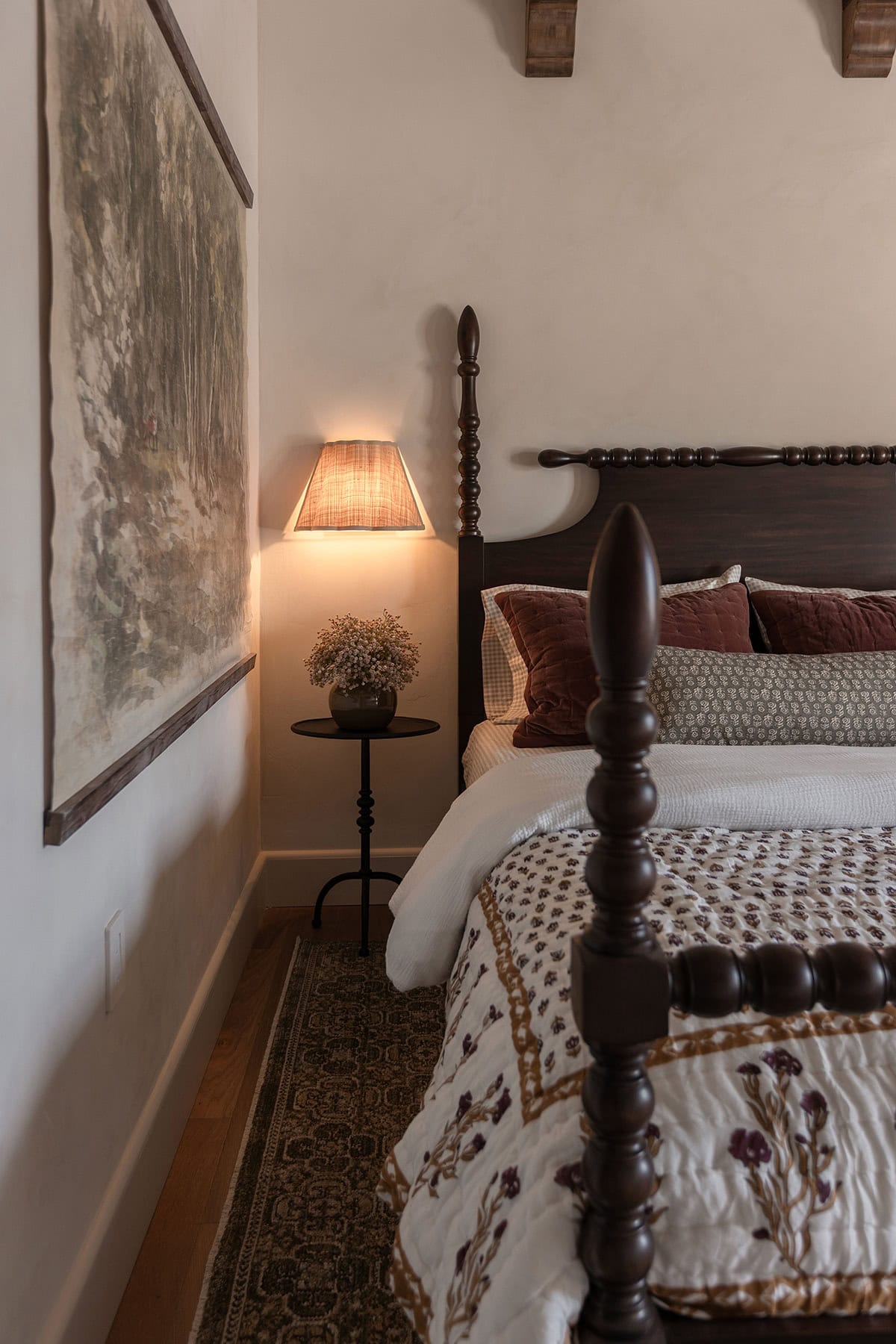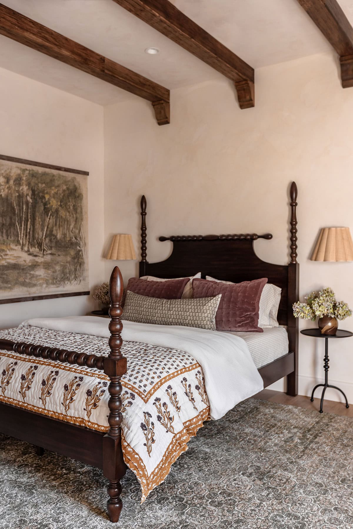 This gorgeous solid wood four poster spindle bed was the first piece I found for this space, and an instant add to cart. It anchors the space and elevates the overall look with a more regal feel.