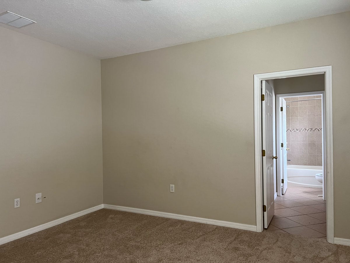 It has a smaller footprint, measuring just shy of 11’x14′, with a trickier layout given the location of the entrance, closet and bathroom doors.