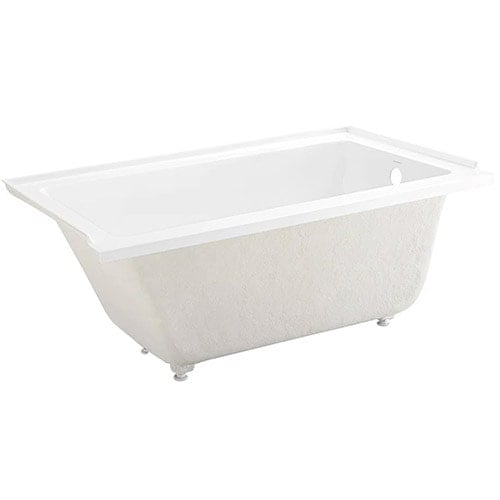 We’ll also be adding a single brass framed glass panel similar to the one shown above. But instead of installing a regular alcove tub, I ordered a drop-in tub so we can tile the front!