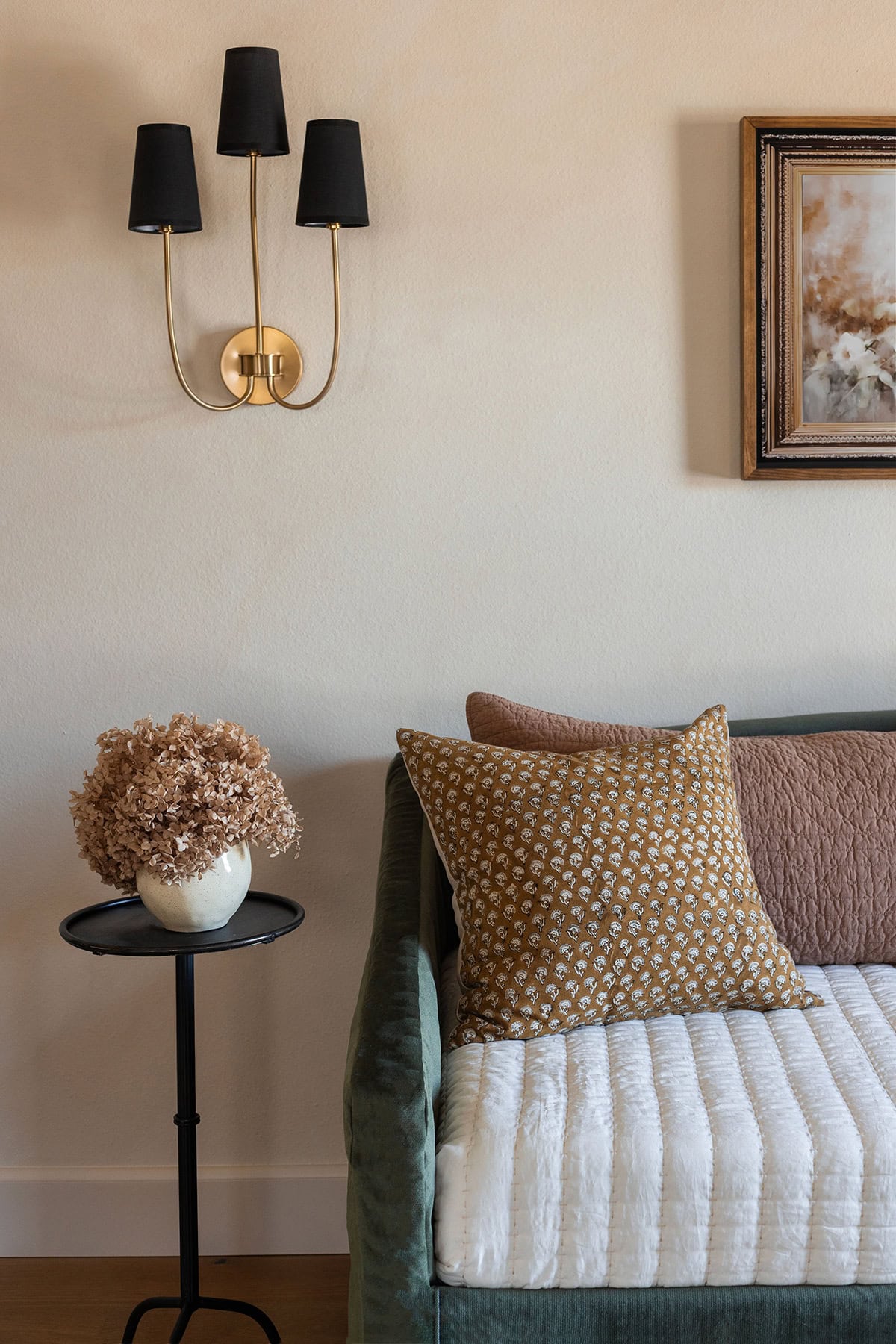 The wall sconces are such a great designer dupe, and of course we framed out the TV to look like art.