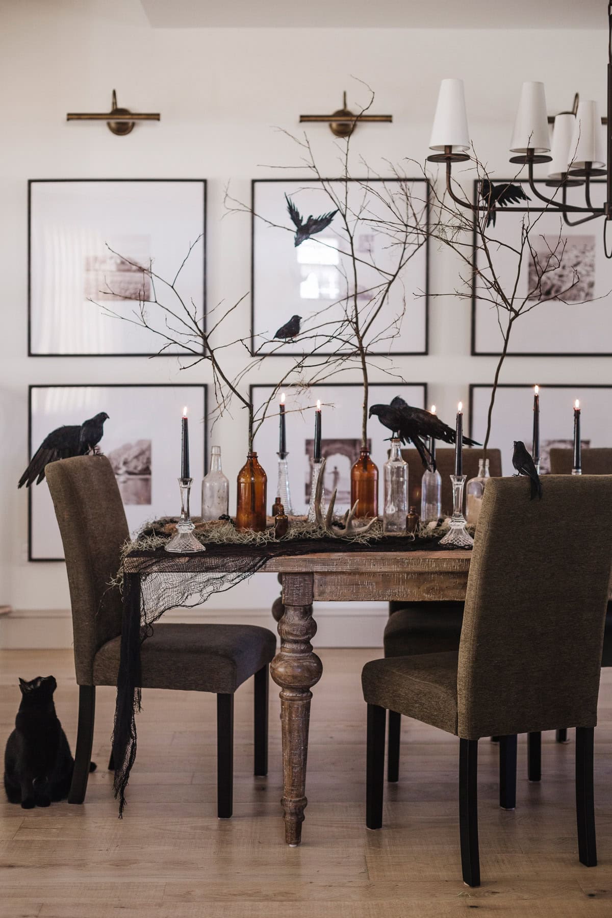A beautiful dining tablescape that doesn’t necessarily scream Halloween: